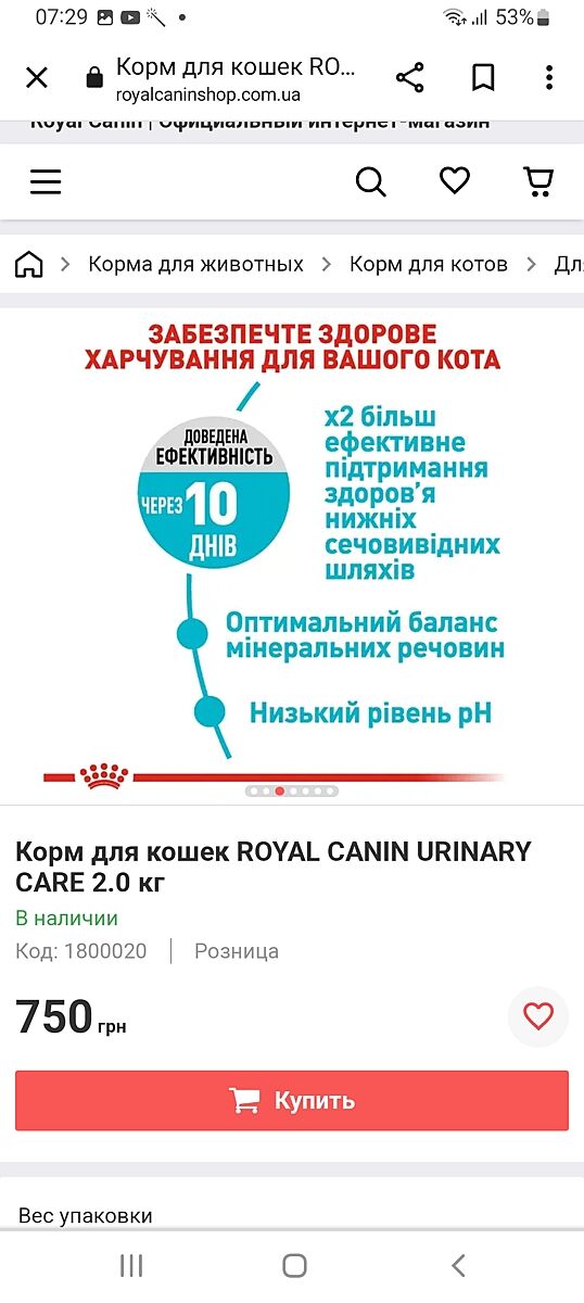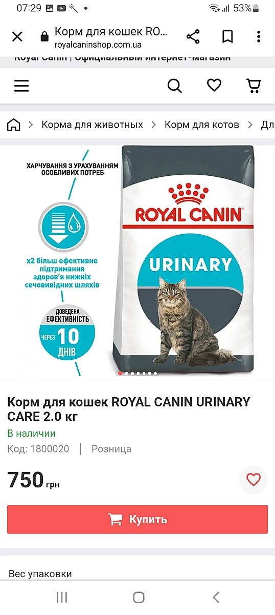У Роял два види корму для здоров´я сечовивідної системи, ось цей більш лікувальний, розчиняє пісок і конкременти