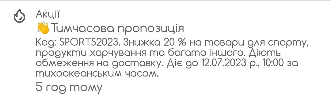 🔹Знижка 20% на товари для спорту з промокодом SPORTS2023 до 12 липня