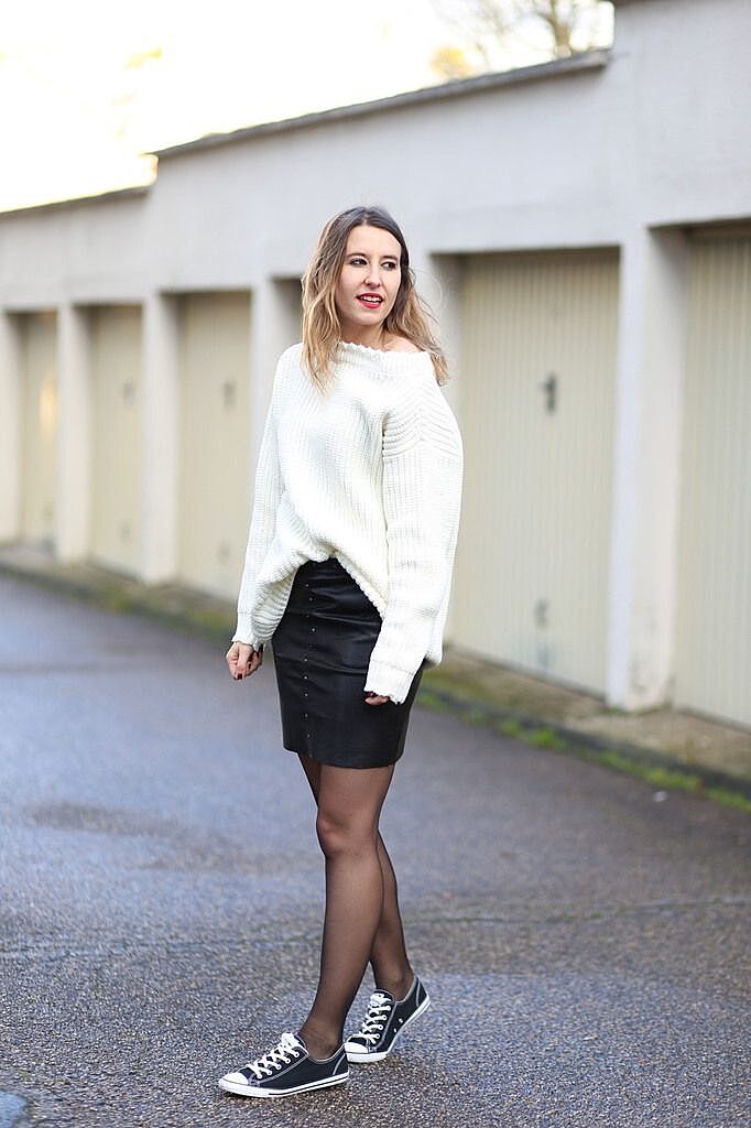 А с чем совмещать кеды в прохладную погоду, если надеваешь короткую юбку?