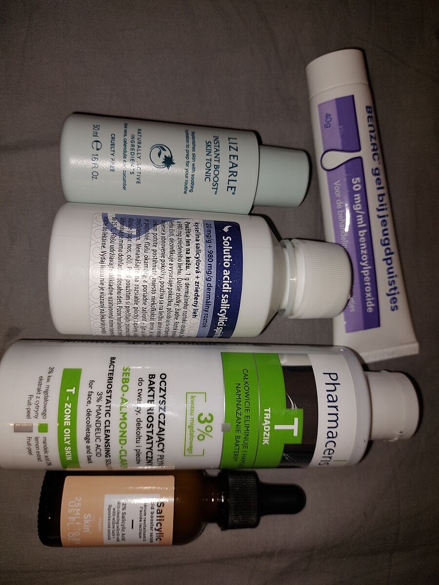 Никогда не страдала проблемами с кожей. Но тут, с наступлением лета моя кожа взбесилась. Обсыпает лицо( подбородок, виски) большими болючими прыщами. Иногда акне чёрные воспаляются. Декольте просто в хлам. И плечи....что происходит? Чуть больше месяца назад спрашивала уже. Купила все, что посоветовали. Пользуюсь 2-3-4 раза в сутки. Очень тщательно. Но ничего не меняется. Подскажите. Ниже фото лица, декольте и средств, чем я пользуюсь.