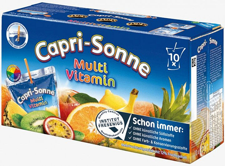 Капрізон. Якщо не помиляюся, початково то була назва німецька Kapri Sonne. Може, тому