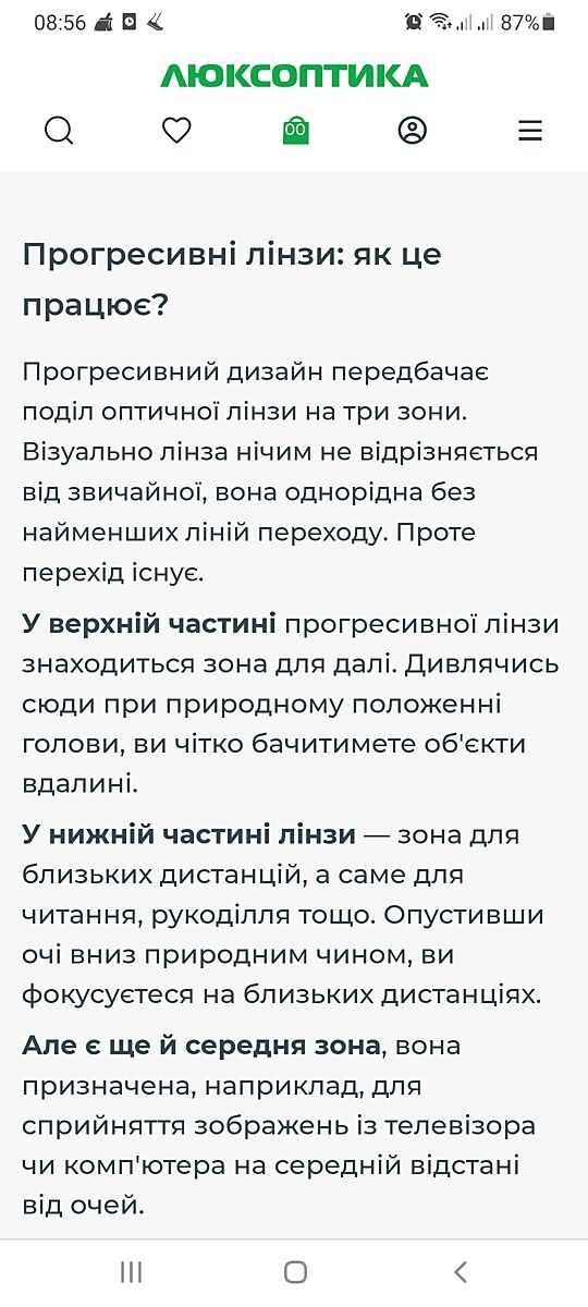 Виберіть звичайні лінзи, не прогресивні. Ціна буде в рази менша. Прогресивні лінзи одночасно можна використовувати щоб дивитись в даль або поблизу. Там дуже складна лінза. В кого дуже поганий зір зазвичай мають 2 пари окуляр. Окремо для далі. І окремо для близі. І все рівно це дешевше ніж одні прогресивні Окуляри.