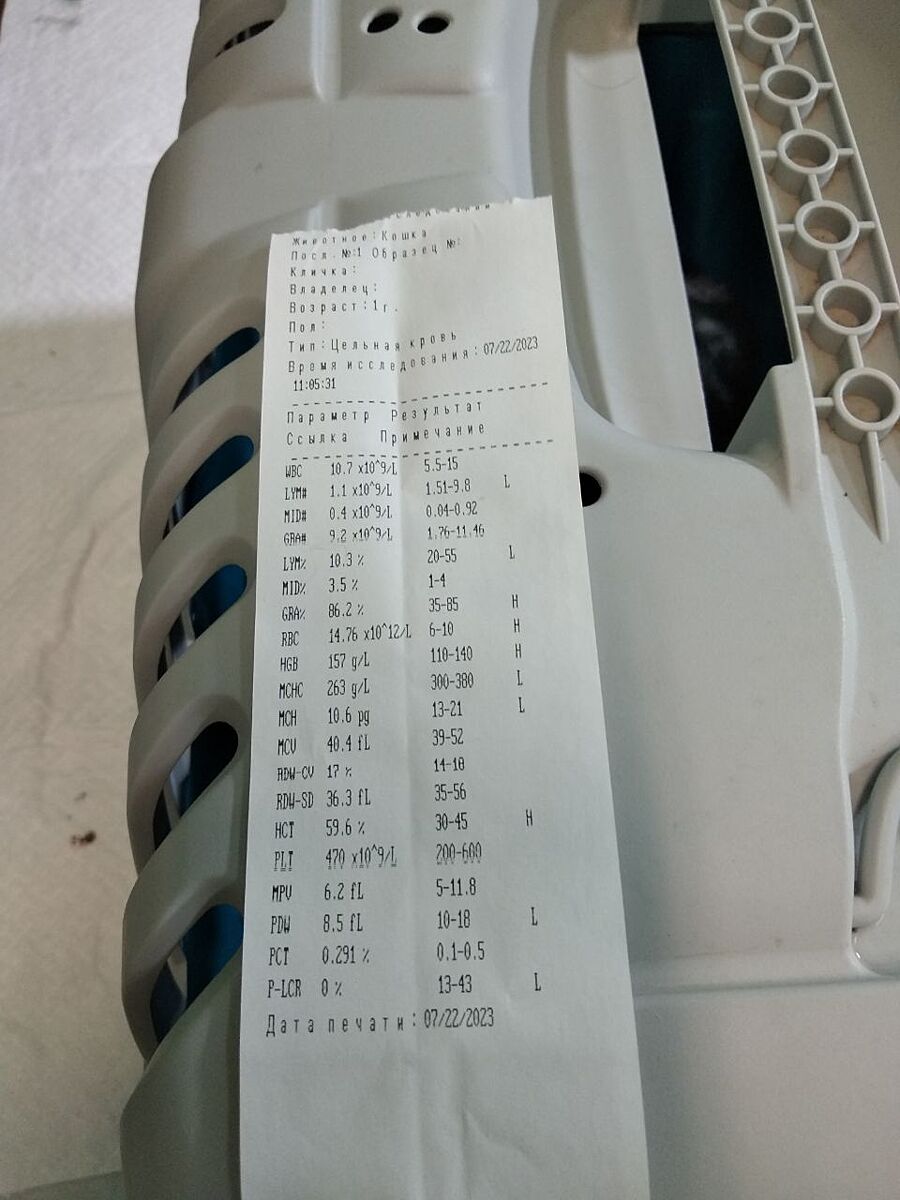 Так это должен вет сказать. Лейкоциты как бы повышаются. Воспаление элементарно показывает биохимия