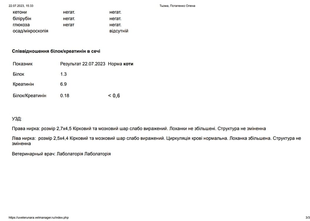 Анализы после уролик: креатинин вырос ещё на 5, мочевина упала до 3.3. Лоханка так же расширена. По поводу лоханки врач сказал даже не думать. Но так как у него было долгое время мкб (струвиты, без осложнений, корм и профилактика), беспокоюсь. Другого нормального узиста в городе не знаю, город небольшой. При всех этих процедурах кот сильно стресует, его трусит.