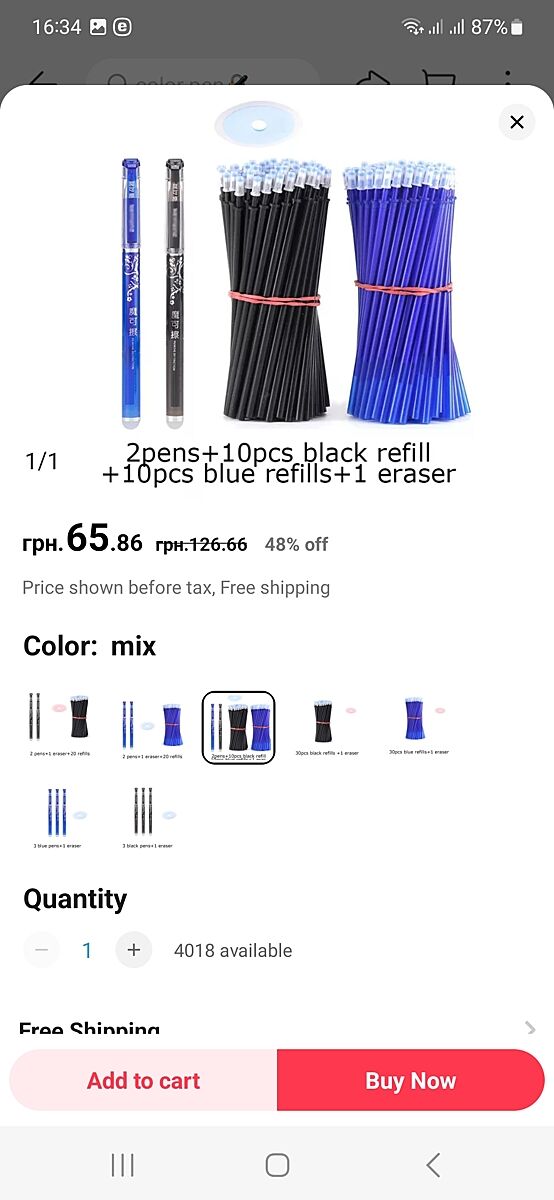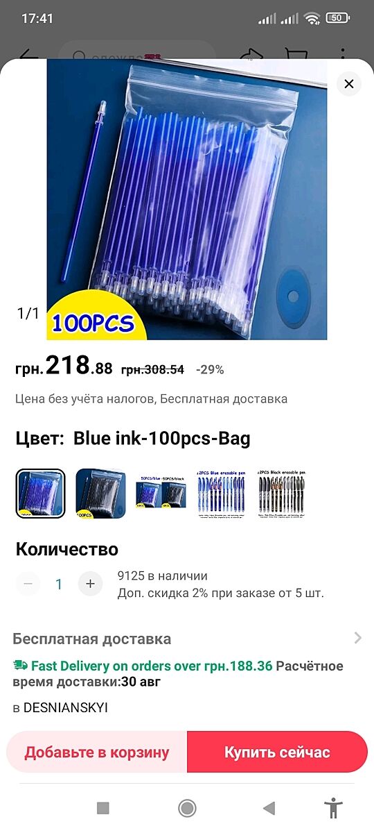 На Али покупаю. Вот заказала 4 ручки +50 стержней в комплекте. Около 100 грн.