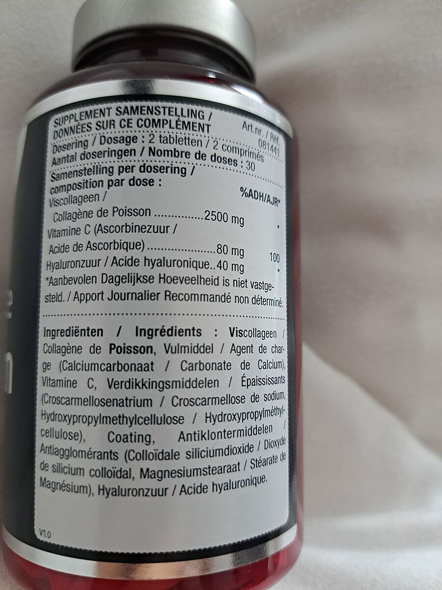 Коллаген 2500 ,витамин с 80,гилауроновая кислота 40 )) Это в одной капсуле. Без витамина с он вроде не усваивается. Пить нужно на годный желудок. По мне так все в норме.