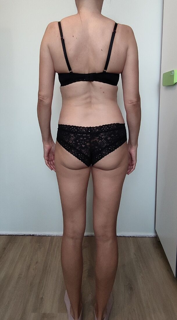 Нормальная визуально фигура, жира лишнего нет. Если хотите формы и не лень - качаться. Но очень осторожно, с тренером, вам категорически нельзя раскачать спину. Ножки стройные. Лифчик мал в объеме)
