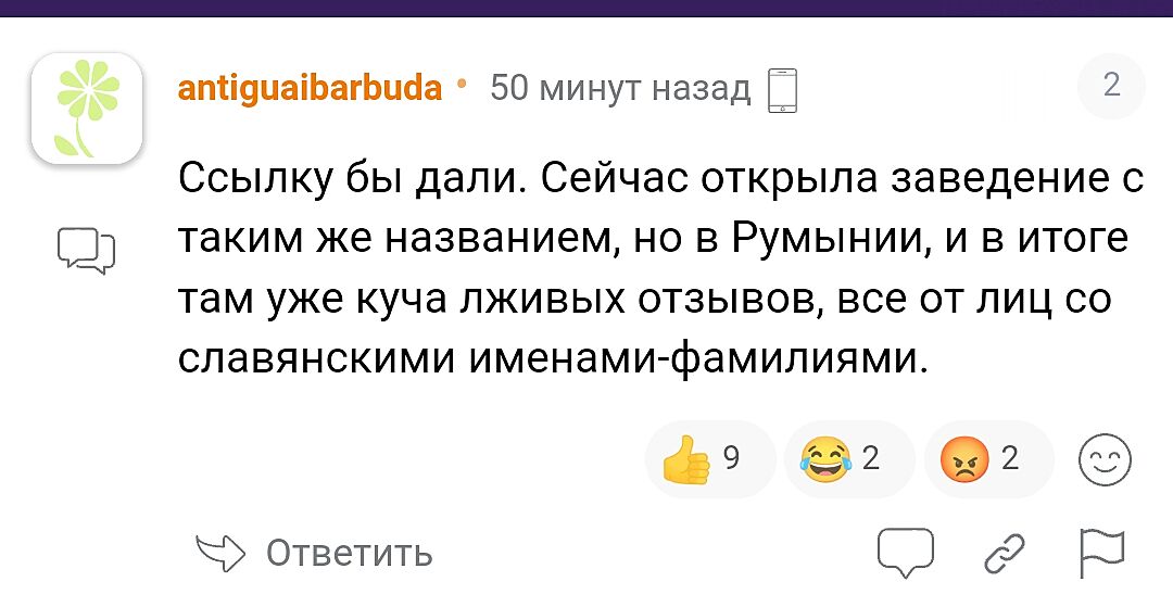 Ссылку бы дали. Сейчас открыла заведение с таким же названием, но в Румынии, и в итоге там уже куча лживых отзывов, все от лиц со славянскими именами-фамилиями.