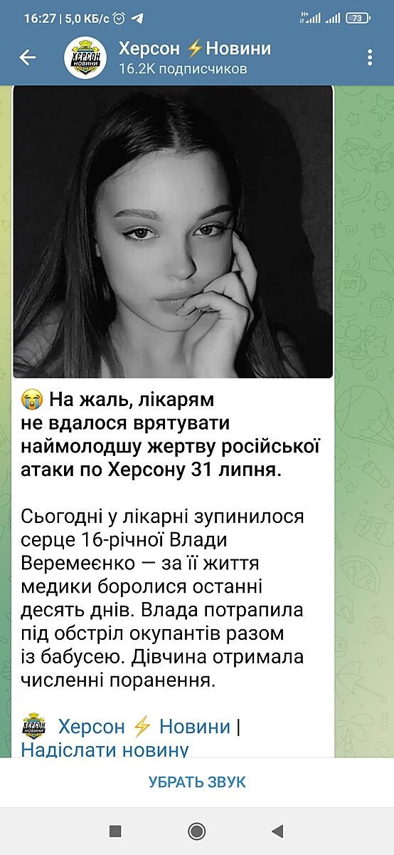 А про эту девочку знаете? Не пишут, кроме местных пабликов, а погибла также и тоже вся жизнь могла быть впереди, если б не клятая война