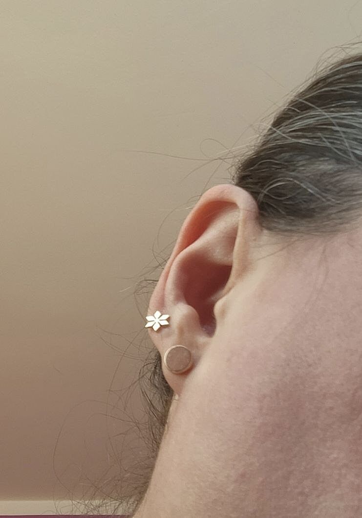 Сейчас пандору ношу, дырочки в ушах чуть заросли т.к. у пандоры тоньше застежка и гвоздики влезают с трудом.