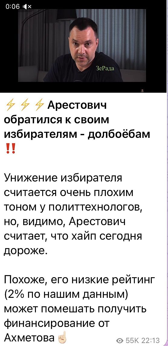 А хто це Арестович? Яку державну посаду обіймає зараз? Якщо ніяку, то це приватна особа, яка може казати, що завгодно, і не варта особливої уваги