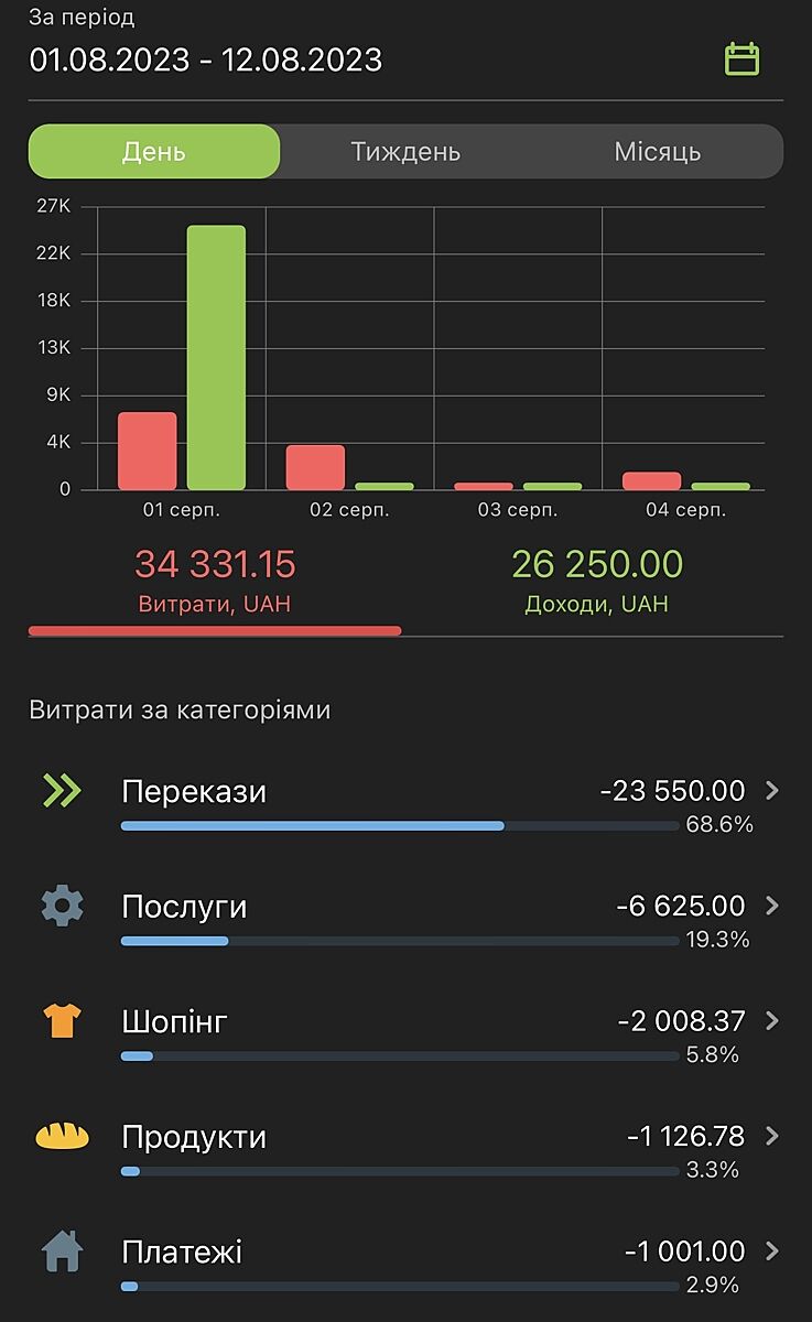 Ну вот смотрите мои расходы сегодня, они в евро перевела вам в гривны: