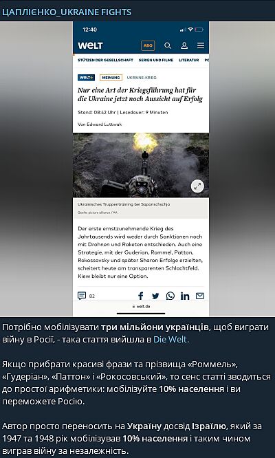 Потрібно мобілізувати три мільйони українців, щоб виграти війну в Росії, - така стаття вийшла в Die Welt.