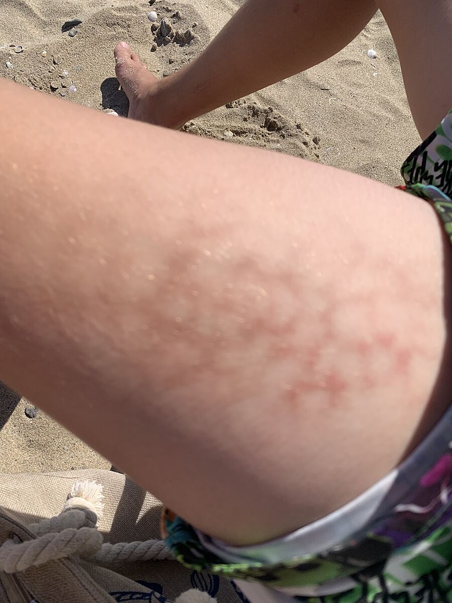 Так я ж пришла не за диагнозом и лечение . Я пришла узнать было ли у кого-то что-то похожее. Я сперва решила что он в море ударился, но не может синяк быть так долго.