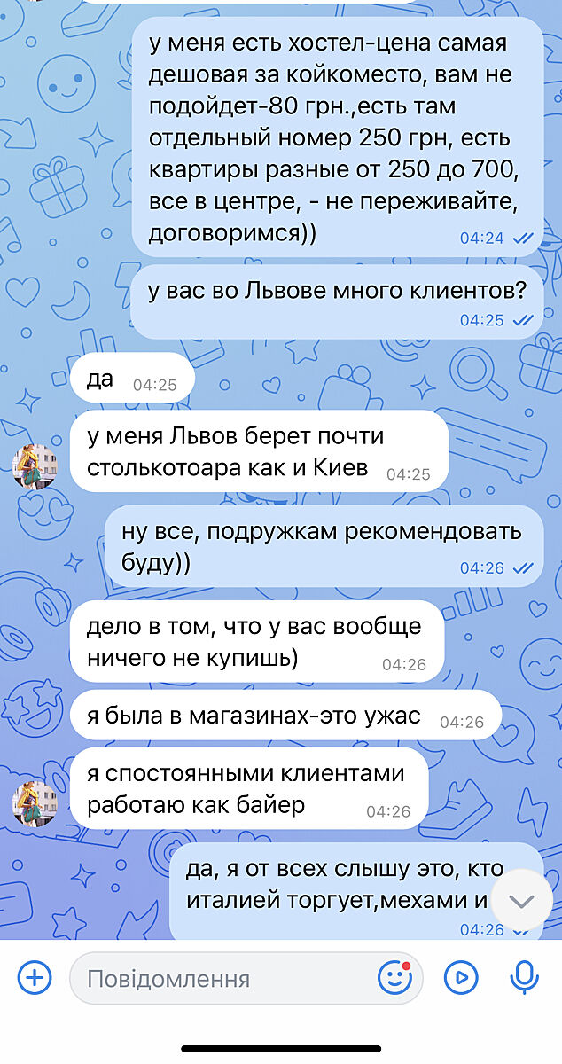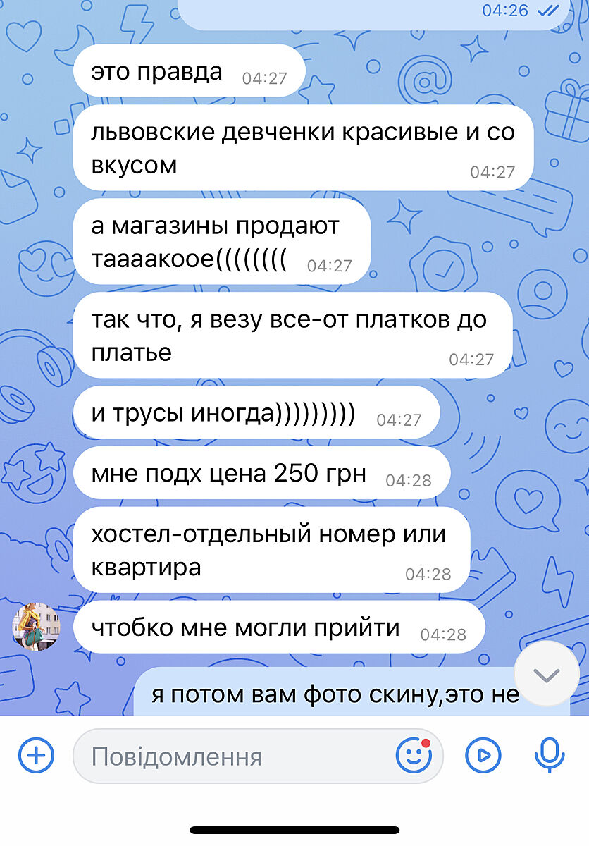 Я пам‘ятаю як я в неї сумку купувала і вона тут писала який в неї крутий мужик як такого знайти і втримати як вони у Львові лише у готелі Вінтаж в люксі живуть, а потім в приват було це