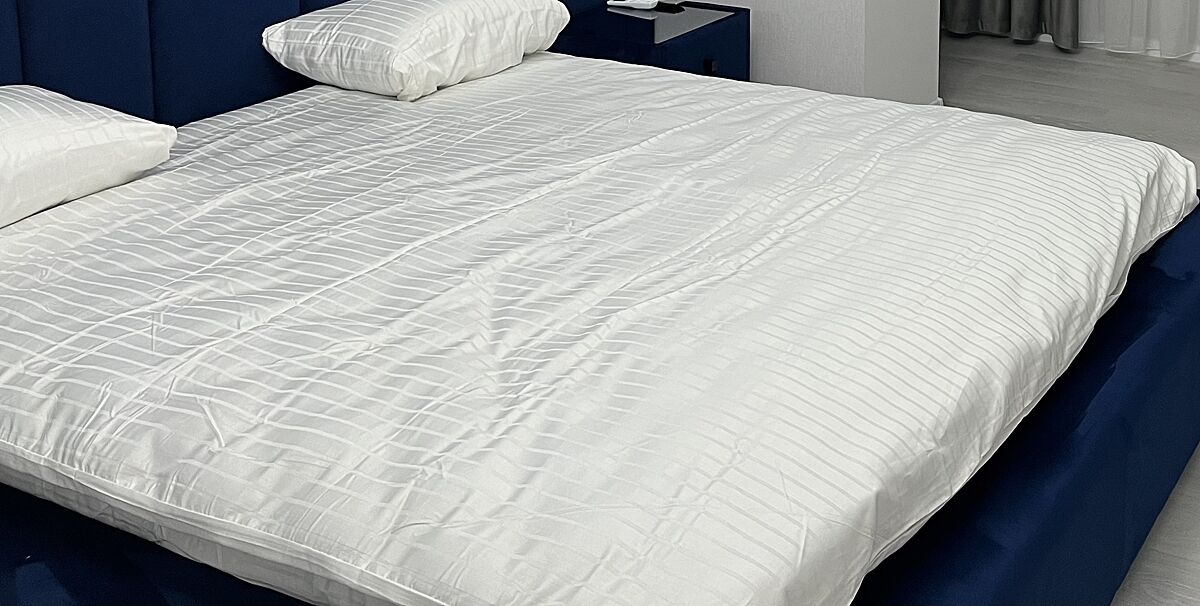 У меня для отелей.Беру всегда такую.Постеле уже год-как новая белоснежная.Плотный хлопок.Для отелей шьют очень хорошие.Но они не дешевые-около 2500 вроде.Стираю при 90 градусов,потом в сушильную машинку ещё