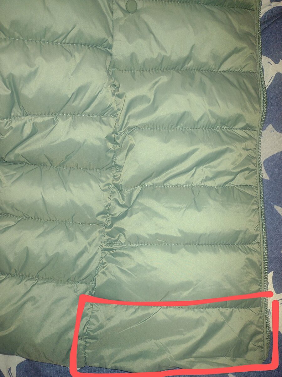 Первый раз заказала на их сайте. Куртка мне понравилась по цвету, как сидит. Многого я от неё не ждала за 1300 грн, но смущает что она с браком. В нижнем квадратике спереди возле молнии полностью отсутствует наполнитель.