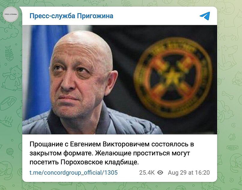 Пригожина закопали в тайне от всех на Пороховском кладбище. Путин и «дорогой брат» Кадыров проститься с главарём ЧВК «Вагнер» не приехали.