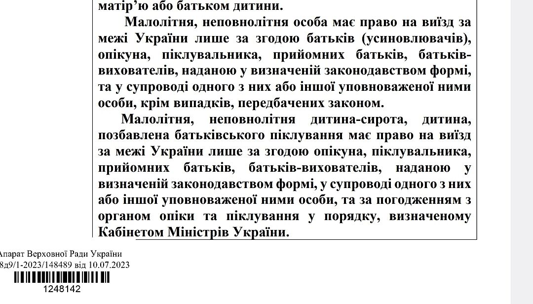 Зараз для виїзду не потрібен дозвіл другого з батьків, якщо вивозить перший