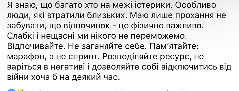 Але боже, мені чомь після тих «46 установок» стало так гірко. Я так розумію що - що? Що ми якась непотрібна нікому нація? Ми навіть менш цінні тих же арабів, циган (ну вони такі самі, да, я не про це, просто сфрмулювать не можу нормально, не по-нацистські). Ну от діти для нас для кожної - найкращі і найлюбиміщі. Моя булочка бідна, я так чекала іі, і от дура народила іі у війну, і тут. Жити в пеклі цьому вз усвідомленням що ій випало так бути не американкою, не канадкою (я не про те, що Україна якась мені крива, просто знов не можу сформулювати. Ну типу що якось вона поза цивілізованим світом чи що. Що замість того щоб нам зберегти елементарно життя, фізичне хоча б, всі думають про зерно, про африку, про гроші. А якби в штатах таке було, то ТАК би не було. Ми ж не виноваті що немає зброї. Це нас так розвели ще 30 років тому, щоб зараз знищити. Чому от саме нас? Ну дівчата, ну у мене уже істерика. І наші щурі ще добивають щодня своїми нововведеннями. Я коротше кажучи здулась морально, бажаю вам так не робить., бо нічого хорошого. Всьо. Можна не відповідать😭. Нема з ким поговорить бо зо я як дура буду . Страдаліца вєлікая(