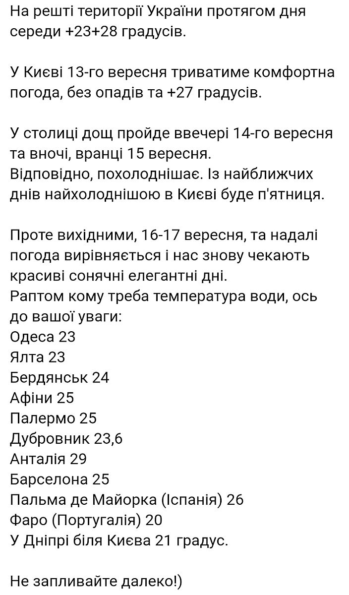 В Фейсбуці у Наталки Діденко постійно дивлюся погоду.