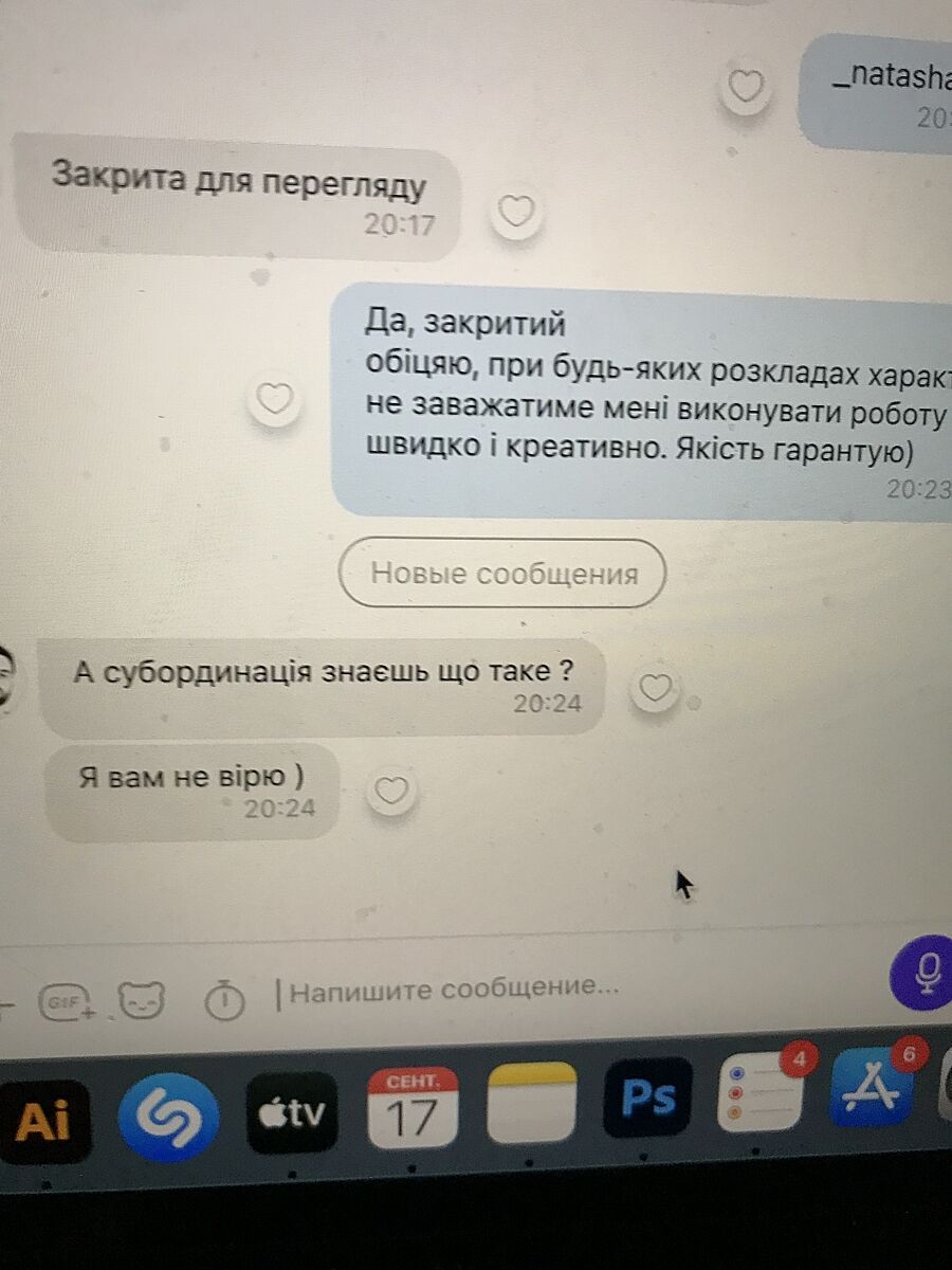 Прислала резюме с фото, потом выполнила тз. Дальше вот. Нормально? Работа графического дизайнера, рекламное агенство. Выполнила тз, уже клиентке скинул .. не поняла?
