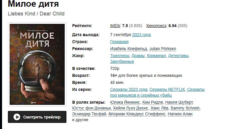 Очень понравился Кроличья нора , и да, Милое дитя тоже отличный, тем более я живу в этой земле Германии