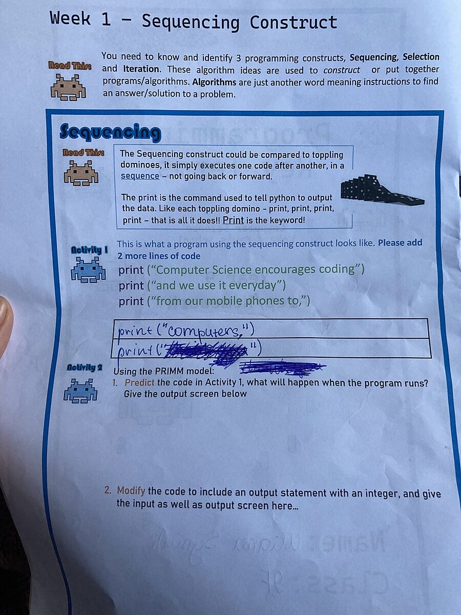 В першому треба просто додати кінець першого речення і початок другого, чи всі три зліпити в одне речення. Я англійської не знаю, не допоможу. Просто написати між ланими рядками print(’що ви там придумали’)