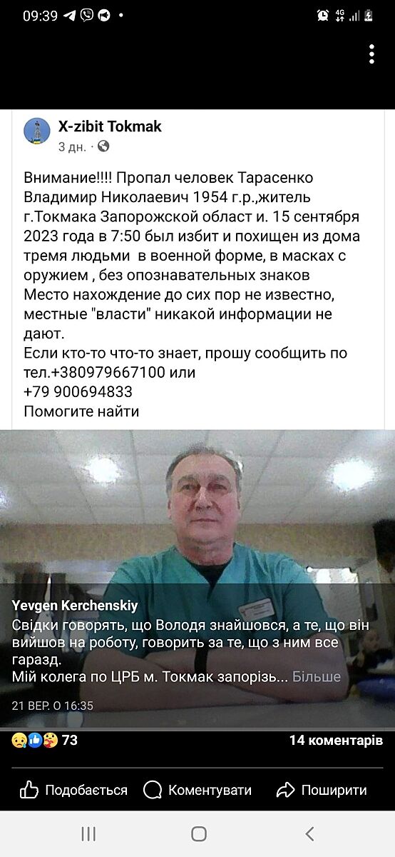 Те що в окупації твориться жах неможливо приховати. Ось з останнього. Минулого тижня в окупованому Токмаку русня викрала лікаря.