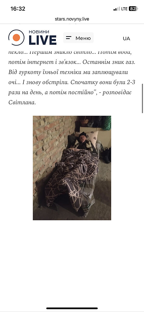 "Вся ця гидота зайшла до Ворзеля… Вони перли на своїх танках, БТРах, БМП. Зверху сиділи мерзоти з автоматами. Вони стріляли по всьому, що ворушиться. Ховалися за будинками мешканців, в´їжджаючи впритул на своїх танках. Так вони ховалися від артилерії. Ось тоді почалося справжнє пекло... Першим зникло світло... Потім вода, потім інтернет і зв´язок... Останнім зник газ. Від гуркоту їхньої техніки ми заплющували очі... І знову обстріли. Спочатку вони були 2-3 рази на день, а потім постійно", - розповідає Світлана.