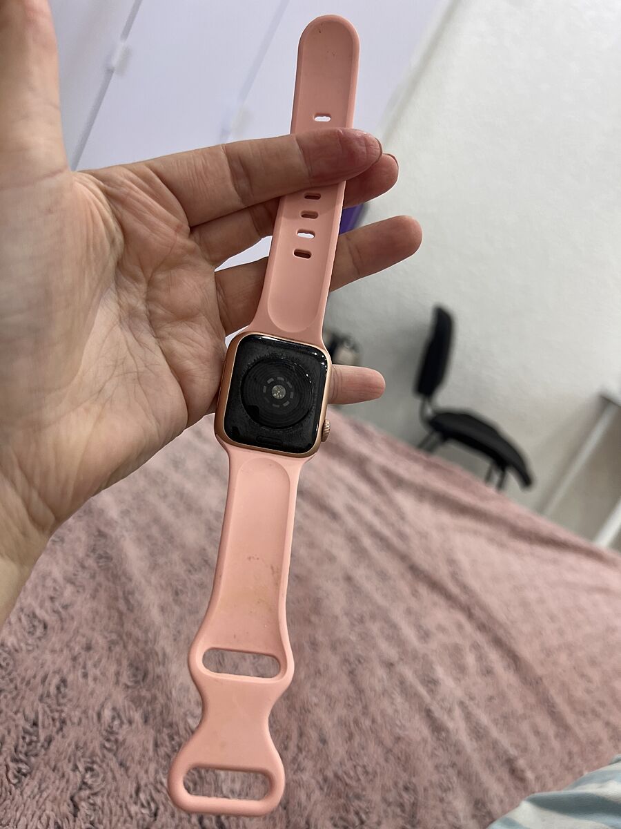 Вот у меня точно такое же. Сейчас купила новые эпл вотч, силиконовый ремешок (оригинал) сразу сменила на свой старый металлический, чтобы избежать повторения. Хоть муж и говорил, попробуй. Но пока не решаюсь.