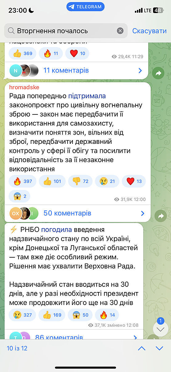 Дитина середня поповзом з коридора взяла планшет, і там прочитала і нам сказала, кулеба написав, що бомбят київ, чернігів, ще якісь міста.. Я аж видохнула, що ми не одні такі придурки. Всі може не пам´ятають, а тоді багато розмов було, що харків здадуть, блаблабла... Тому ми збиралися швидко і дуже швидко.
