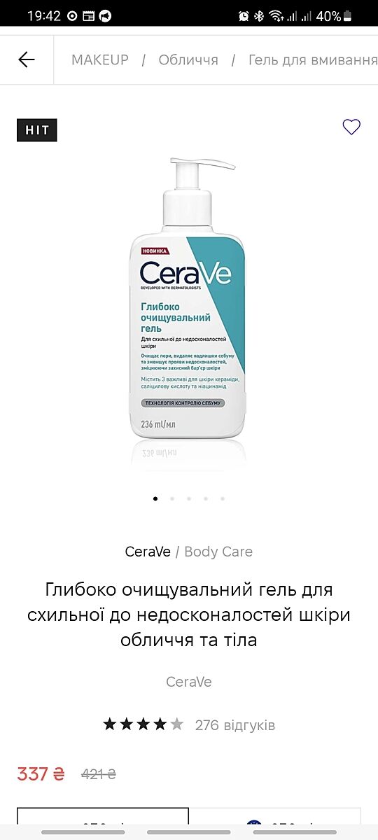 От Cerave в бірюзовому флаконі, для нормальної і комбінованої шкіри вже три рази купувала, гарний засіб