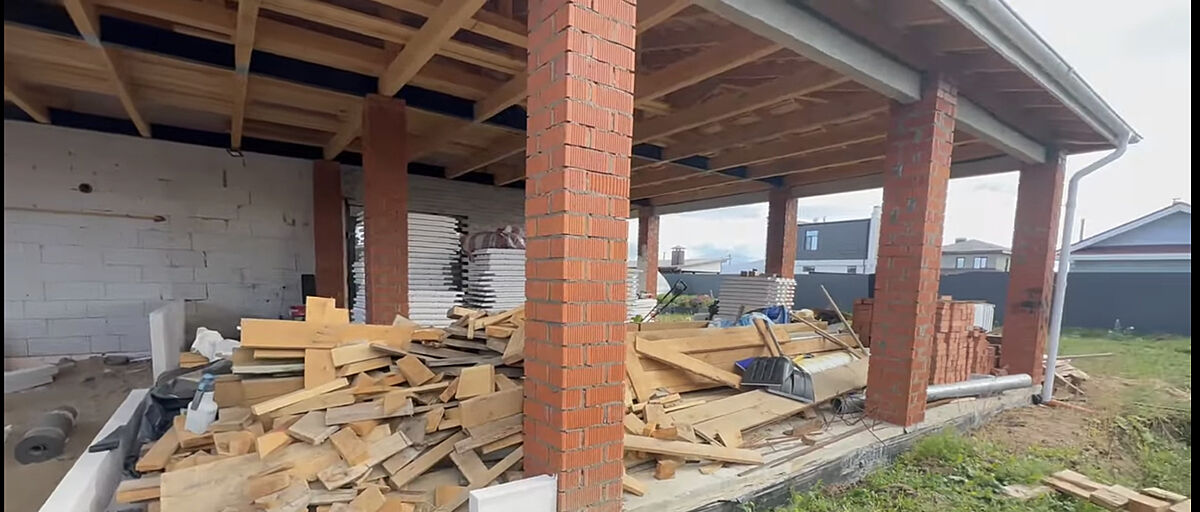 Зимой будет отделка второго этажа. Весной продолжим на улице. Если все будет нормально, может до следующей осени. У нас половину стройбригады на фронт забрали(