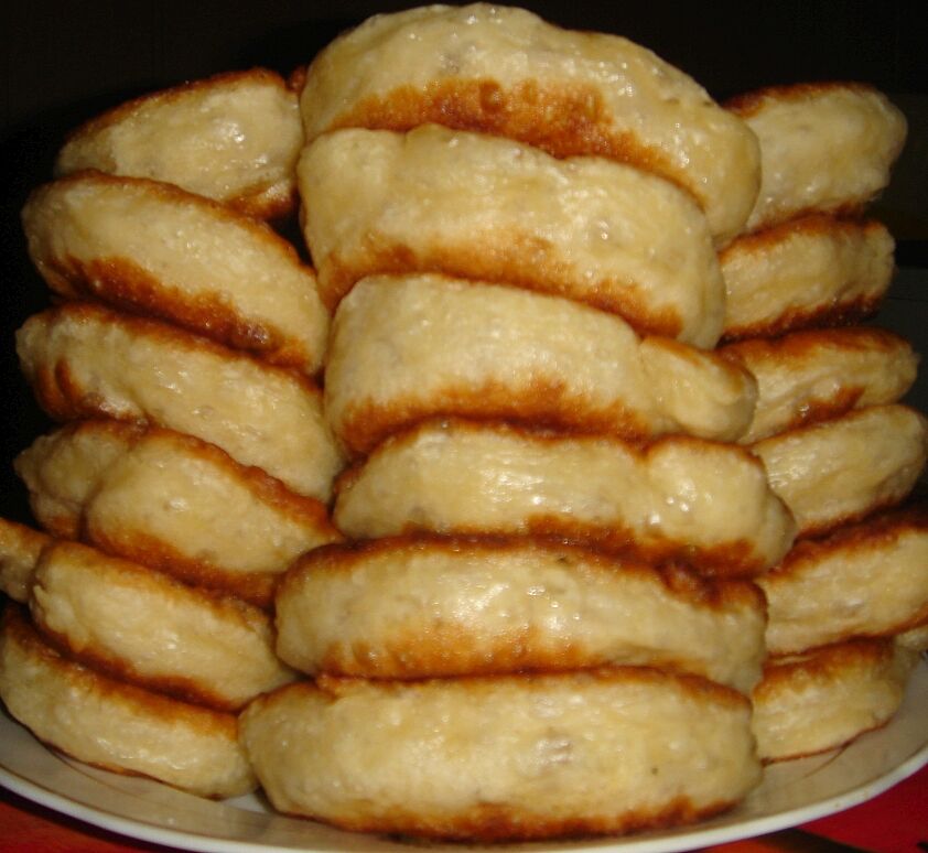 Ой, забыла. Тесто подойти должно ооочень хорошо в кастрюле, берите большую. Там будет доверху теста раза в 3 точно) Потом когда будете жарить, оно опадет, но перемешивать его не надо, Просто кладите ложной. Оно довольно липкое, спадает кусочком на сковороду)