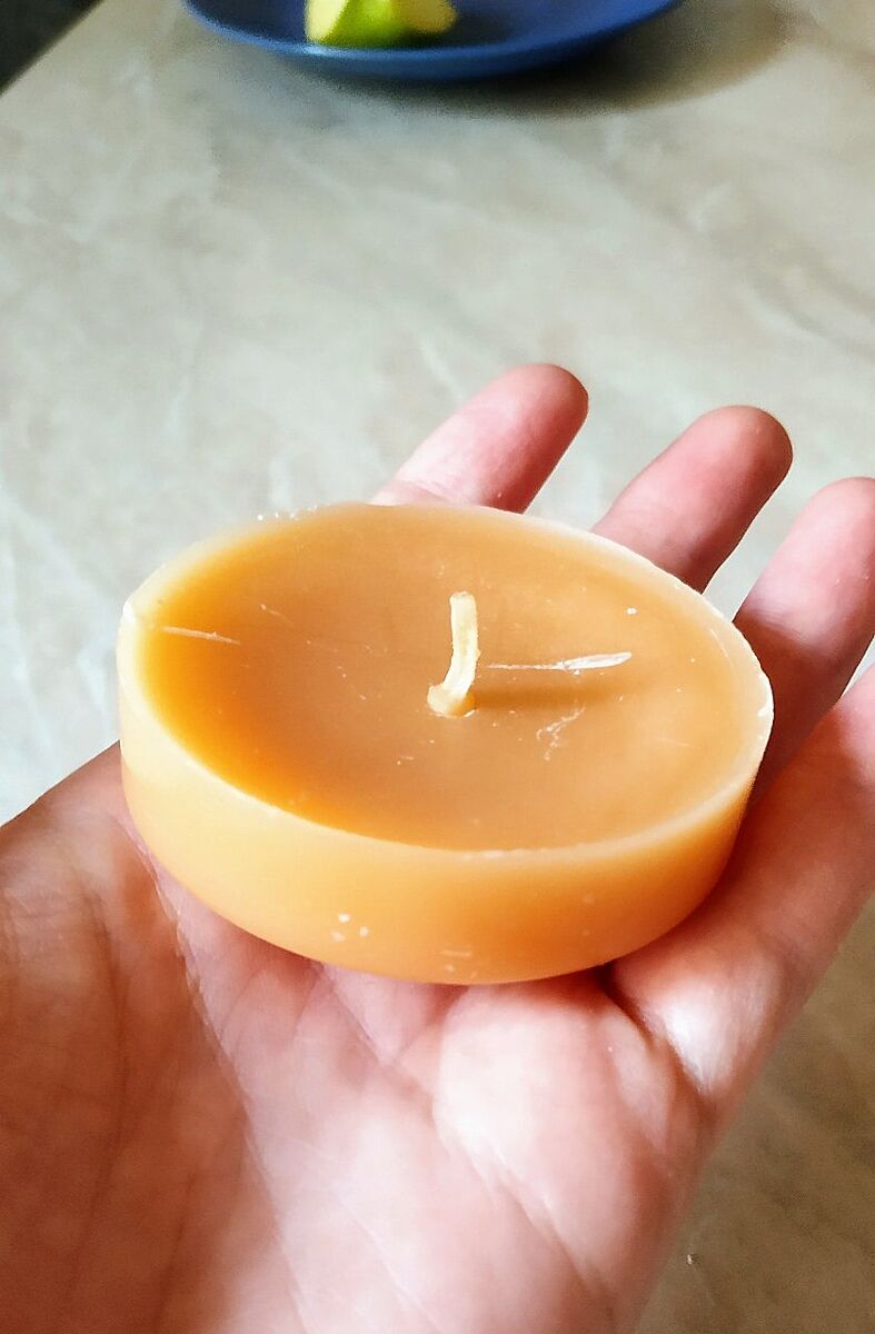 А ещё одну - неудачную с деревянным фитилем - переплавляла потом в такие же плашки.
