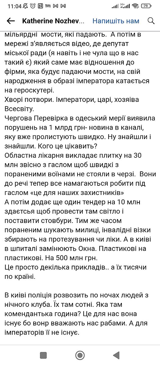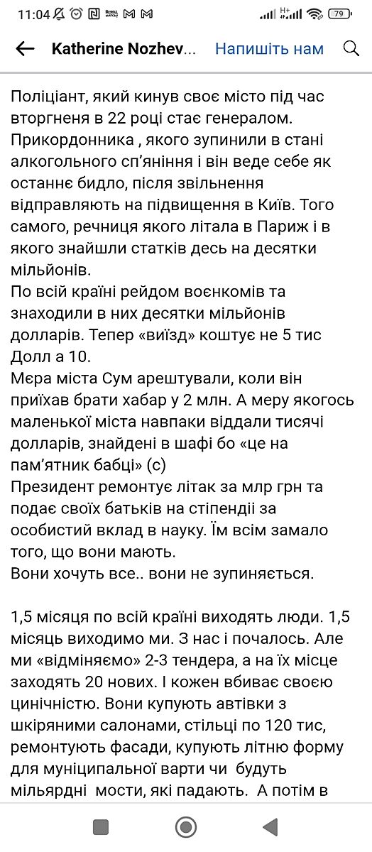 Мій друг з фронту вернувся, не знаю вже яким чином, ще не бачилися, але сказав, що більше не піде ні за що. Воював добровольцем з першого дня. Сказав такого безпрєдела ще не бачив і вмирати за нашу владу він не хоче і життя своє на це марнувати. Постає питання: за що війна? За краще життя? А де воно і звідки воно візьметься? В нас он мера на гарячому за взятку піймали. 1,4 млн. А він каже що не винен і нічого не робив, хоча всі все знають. Впевнена, відпустять, так же як і голову військової адміністрації. Навіть справу не відкрили, за кодон до дітей їздить, відосики знімає. За що прості люди мають померти?