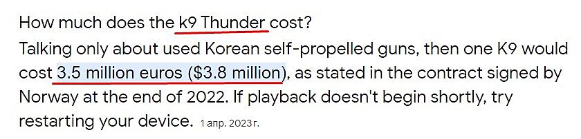 Мы заказали польскую версию K9 Krab, по цене 11 с лишним млн. долларов за штуку, вместо корейской K9 Thunder, ценой 3.8 млн долларов, я вас правильно понимаю?