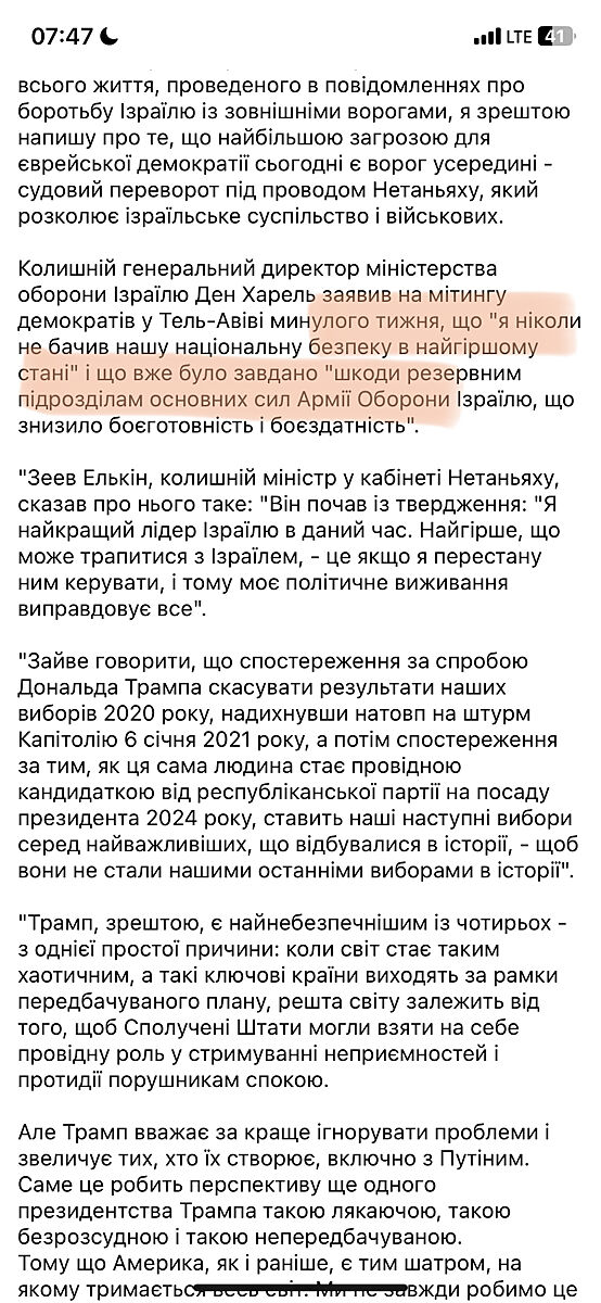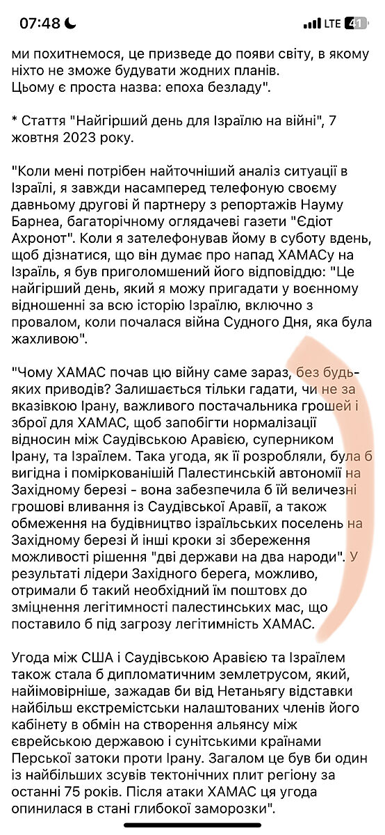Хоча хотіла б його думку почути, про сьогоднішнє. Тому що часто звучало, що ізраїльська армія і розвідка готова до всього