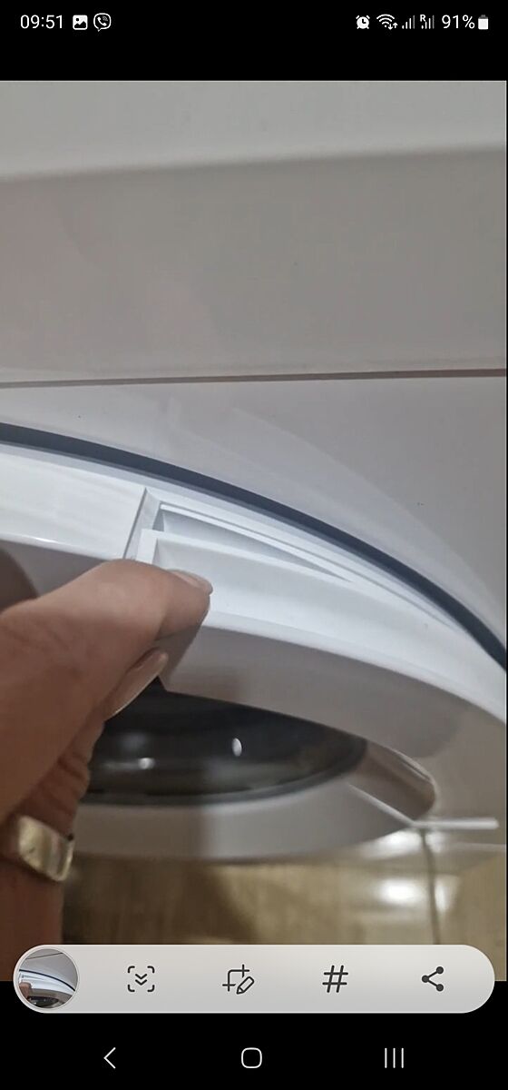 На фото дверца захлопнута. И даже не представляю как тугую дверцу после стирки я открою