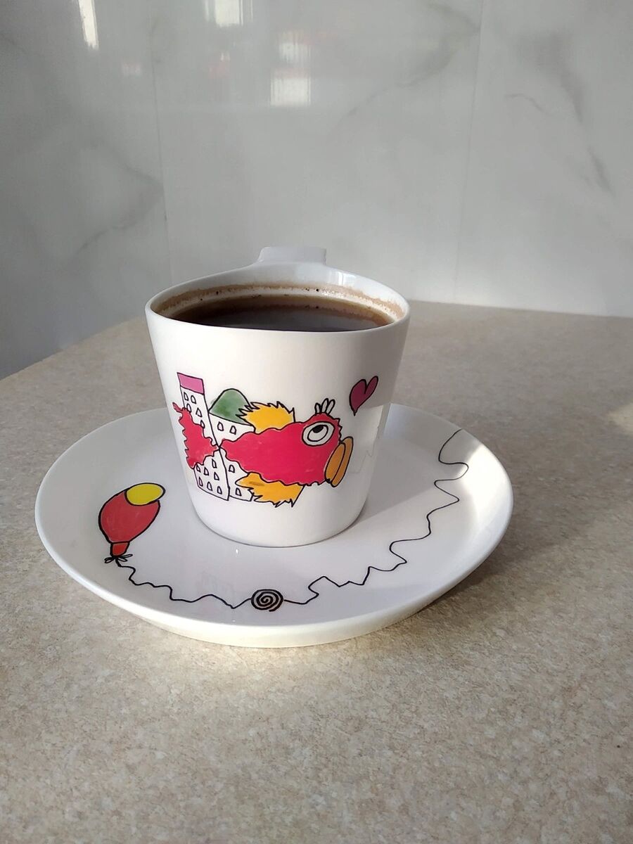 Для меня это ритуал - пить кофе из этой чашки. При чем, не важно, эспрессо или латте. Это дает мне отчасти ощущение дома, даже в гостинице.