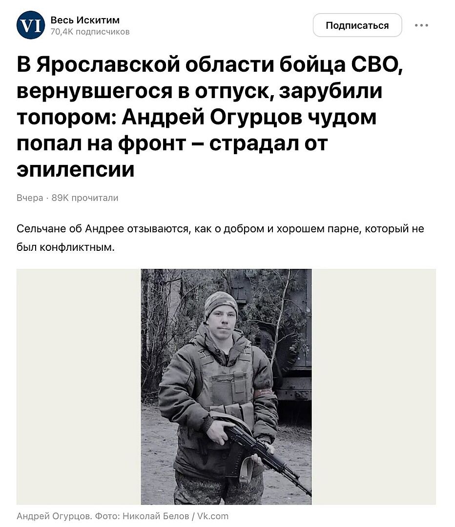 путин отблагодарил за службу .В Ярославской области героя "СВО", приехавшего в отпуск, зарубил топором пьяный товарищ.