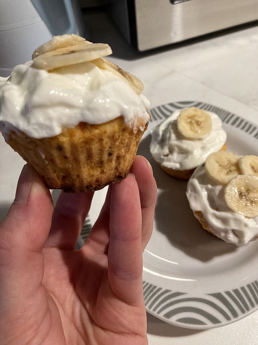 Сиджу вдома. Я спекла морквяно-яблучні кекси, зробила крем з сметани)) такі смішні якось вийшли, але добрі на диво