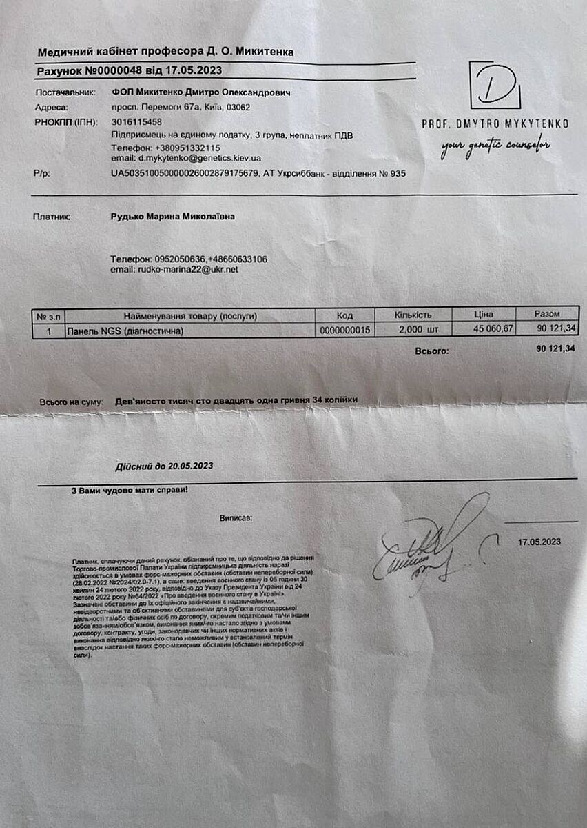 Просимо вашої допомоги в оплаті рахунку на генетичні аналізи. Ці кошти потрібні нам якомога швидше, і будь-яка ваша підтримка важлива для нас. Ми віримо в доброту людей і сподіваємося на вашу підтримку….