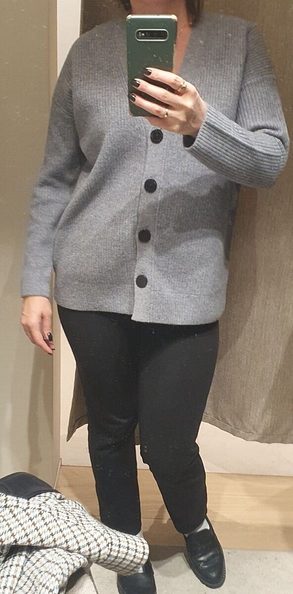 Совершенно не большой. А кардиган серый я бы взяла на размер больше, более стильно будет смотреться.
