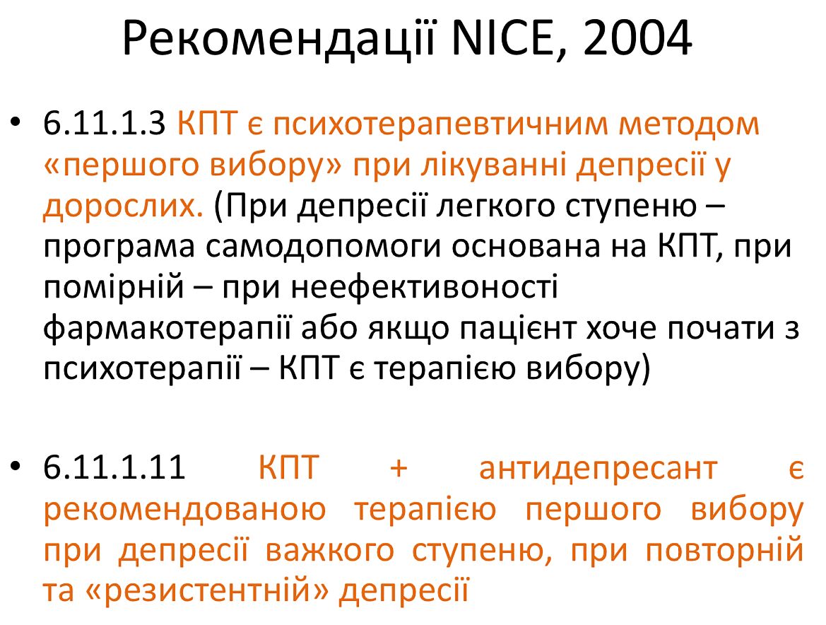 в случае депрессивных и тревожных расстройств нужен ’обычный’ когнитивной-поведенческий терапевт.