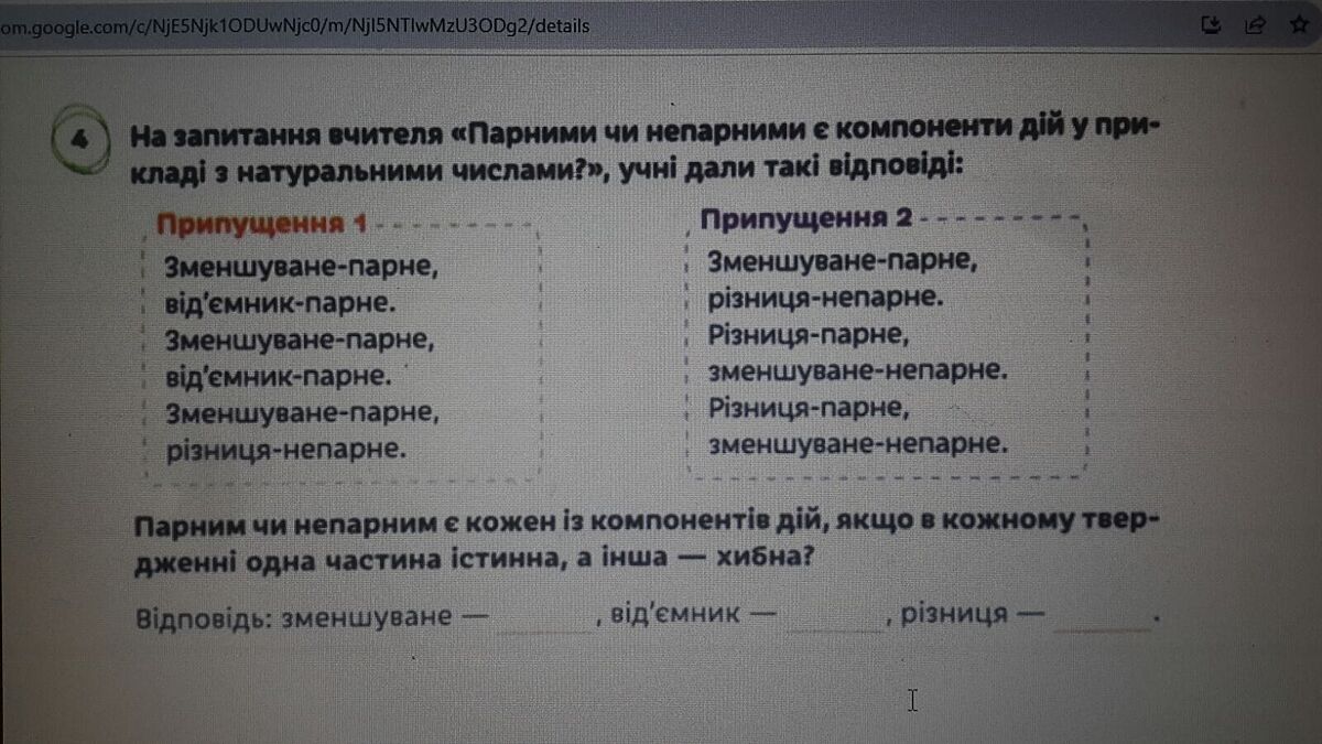 Зменшуване непарне, від´ємник парне, різниця непарне. Злається так