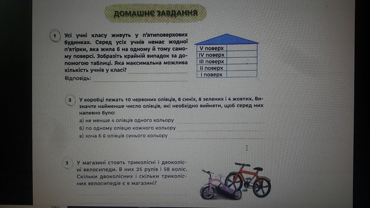 3. 25*2=50; 58-50=8; 25-8=17 двухколёсных; 17*2=34; 58-34=24; 24:2=8 трёхколёсных