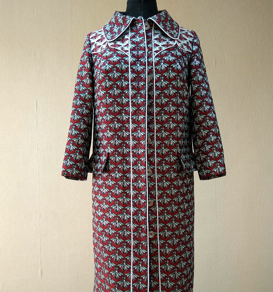 У портного. Впритык было ткани,это жаккард. Фигурная кокетка и фигурный воротник (если надо сфоткаю). Надо было подолбаться со стыковкой. Ваша нравится,оч оригинальна,а мой вкус просится халат кимоно. Типа как тут👇🏼