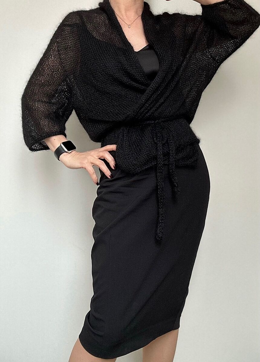 паутинка вяжется ’толстыми’ спицами 5 или даже 6 мм, обычной лицевой гладью, без рисунков, без скосов плеча и пройм, ну если умеете, то реглан, а если нет, то просто вшивной рукав самый обычный, это самое простое, проще только шарф.